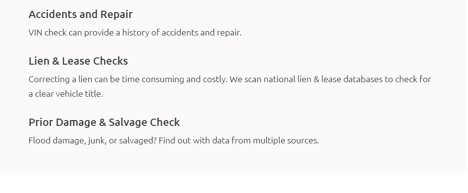Unlock the full story behind any vehicle with our cutting-edge VIN Check Service, powered by WI VIN Search; it's not just a car history report-it's your ultimate tool for empowerment, giving you the confidence to make informed decisions with unparalleled insights into a car's past, from accidents to ownership changes and everything in between, so you can drive forward with peace of mind, knowing you've uncovered every detail, every time.
